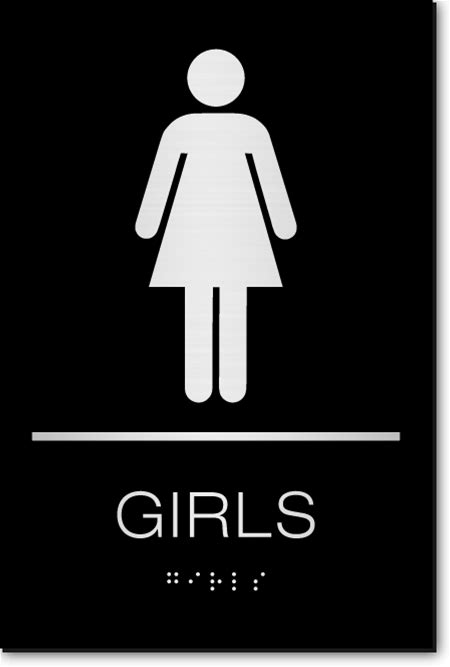 GIRLS Restroom ADA Sign W/ Braille, 6X9 In, Aluminum/Black Color, CAD-Cut Acrylic | ADA Sign Factory